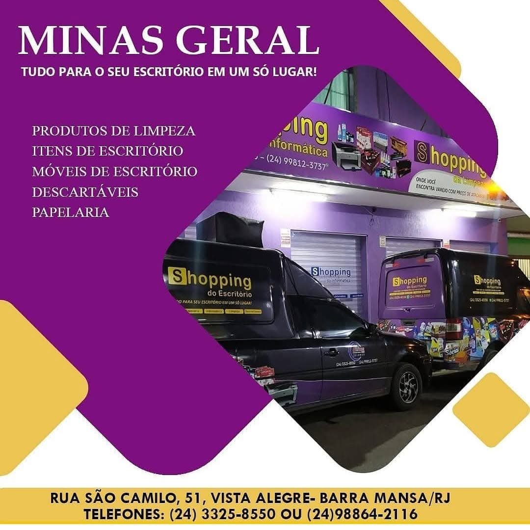 Com mais de 20 anos de atuação no mercado, a Minas Geral Distribuidora é referência na venda de materiais de escritório (papel A4, canetas, envelopes...), materiais de informática (cartuchos, toners, impressoras, acessórios...), produtos de limpeza, descartáveis e uma linha completa de móveis para escritórios e residências.